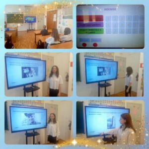 В 7 классе классный час был посвящён «Дню космонавтики». Ребята поиграли в «Свою игру» по теме «Космос», поучаствовали в фотосессии «Улыбка Гагарина».